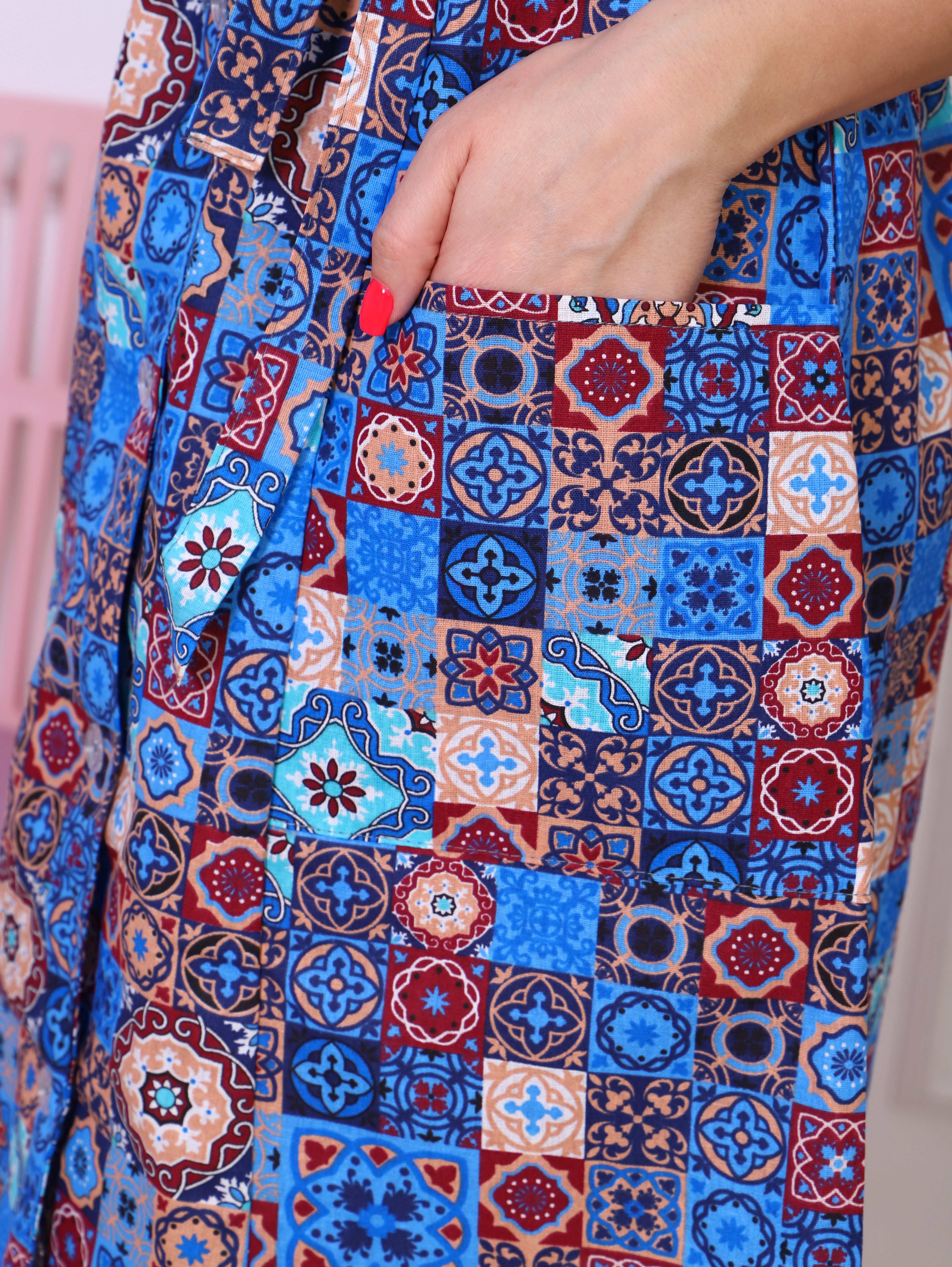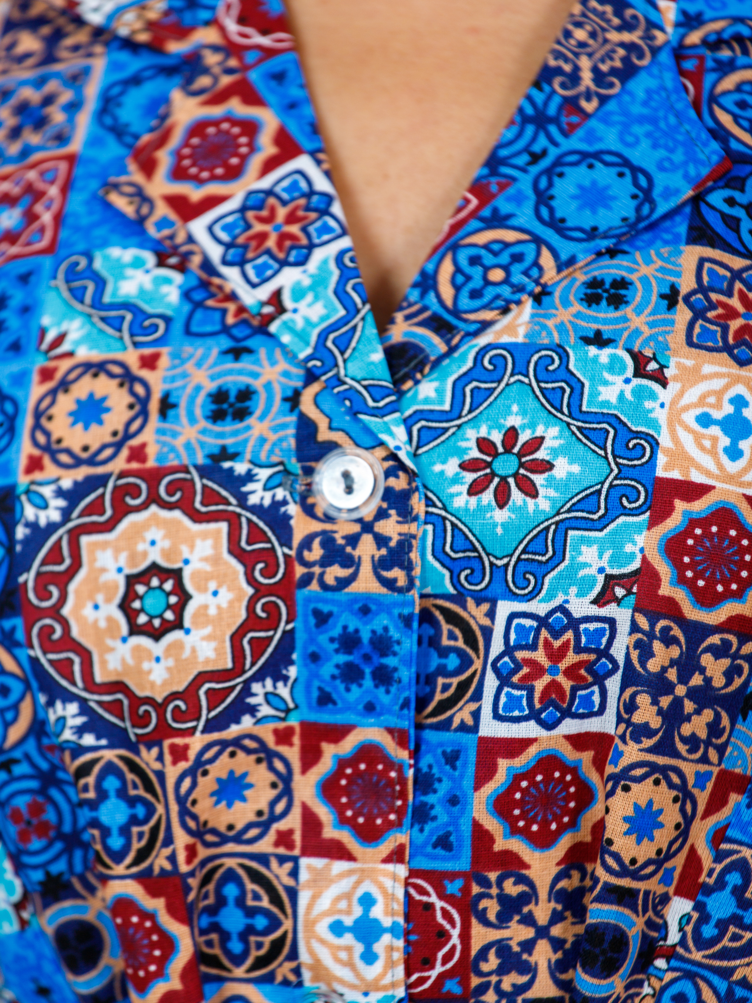 Халат домашний летний бязевый на пуговицах, с накладными карманами и втачным коротким рукавом, выполнен из натурального хлопчатобумажного материала 100% хлопок.