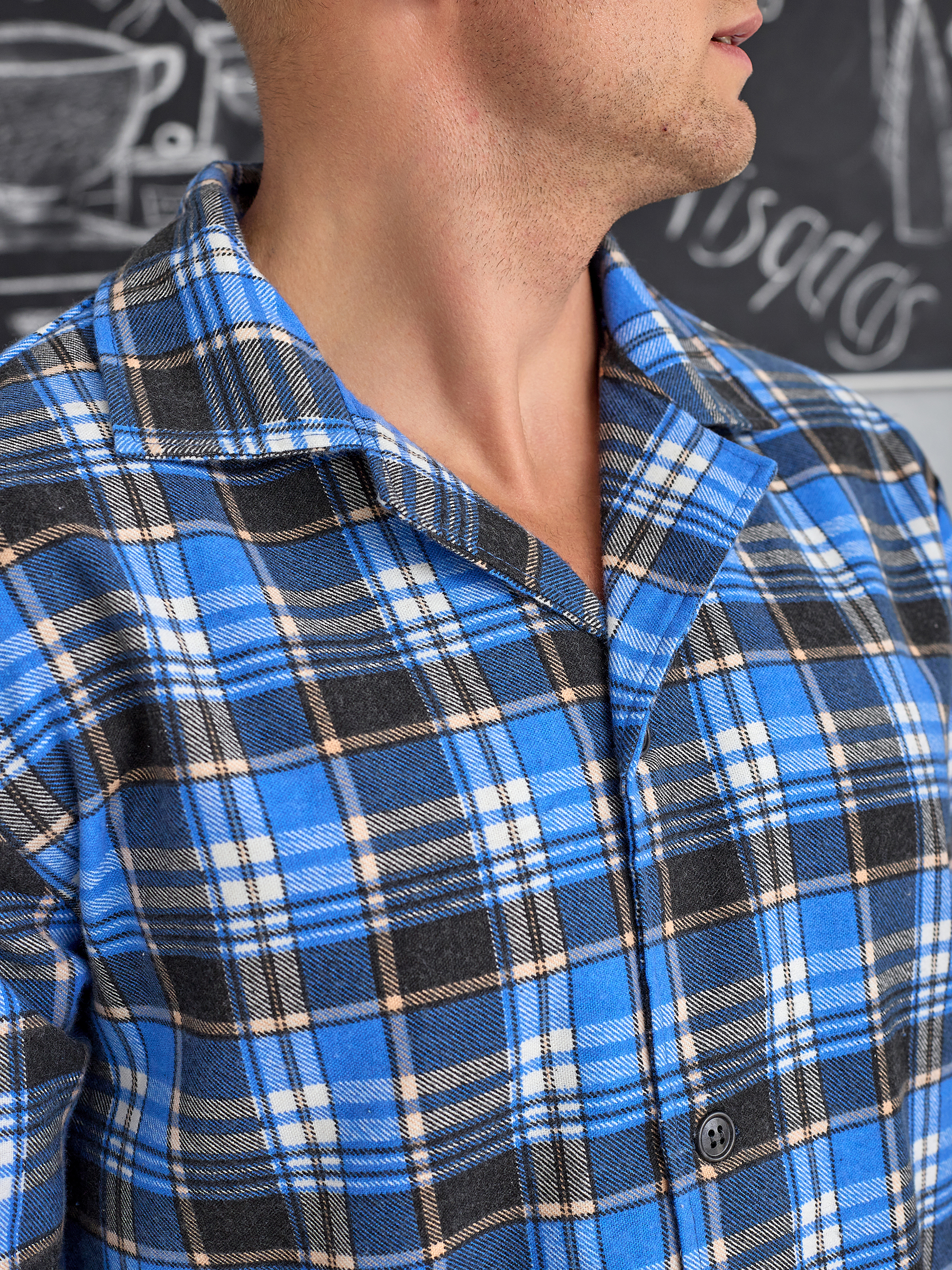 Фланелевая байковая мужская пижама со штанами  выполнена из 100% хлопка.