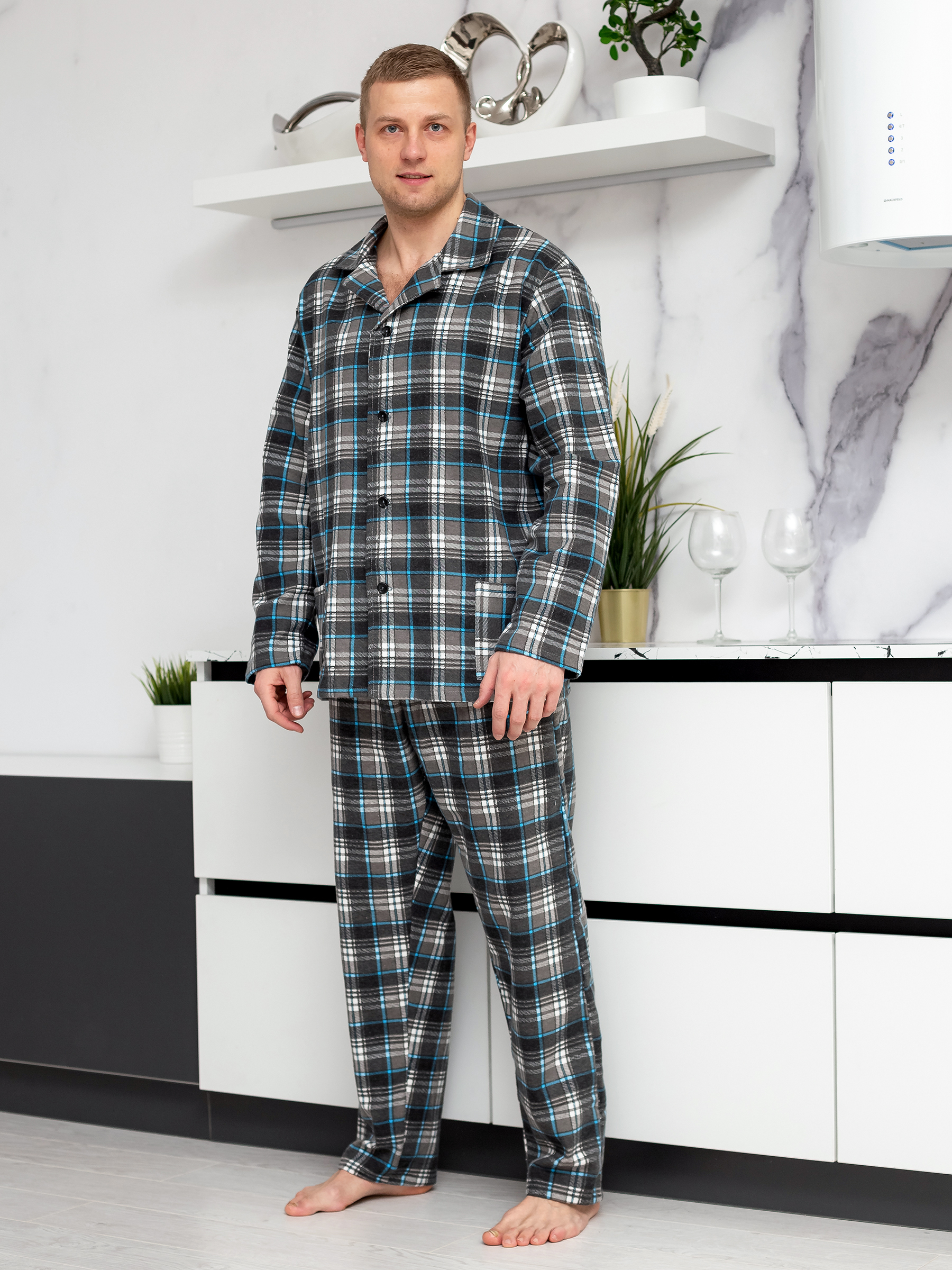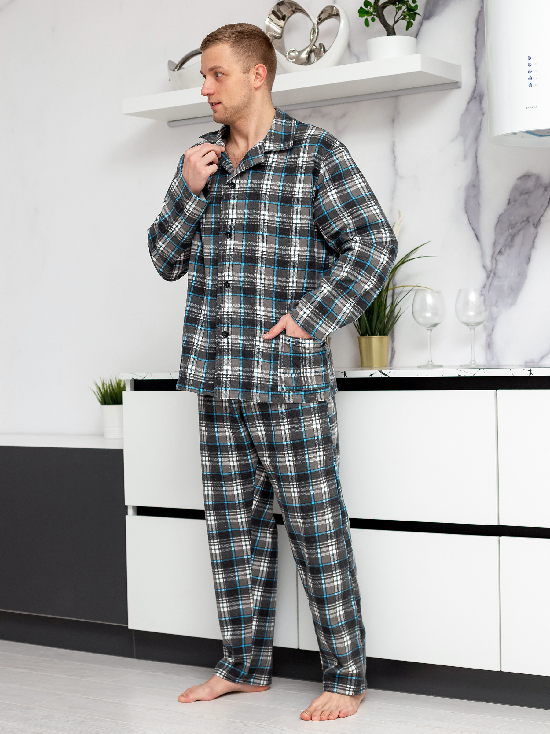 Фланелевая байковая мужская пижама со штанами выполнена из 100% хлопка.