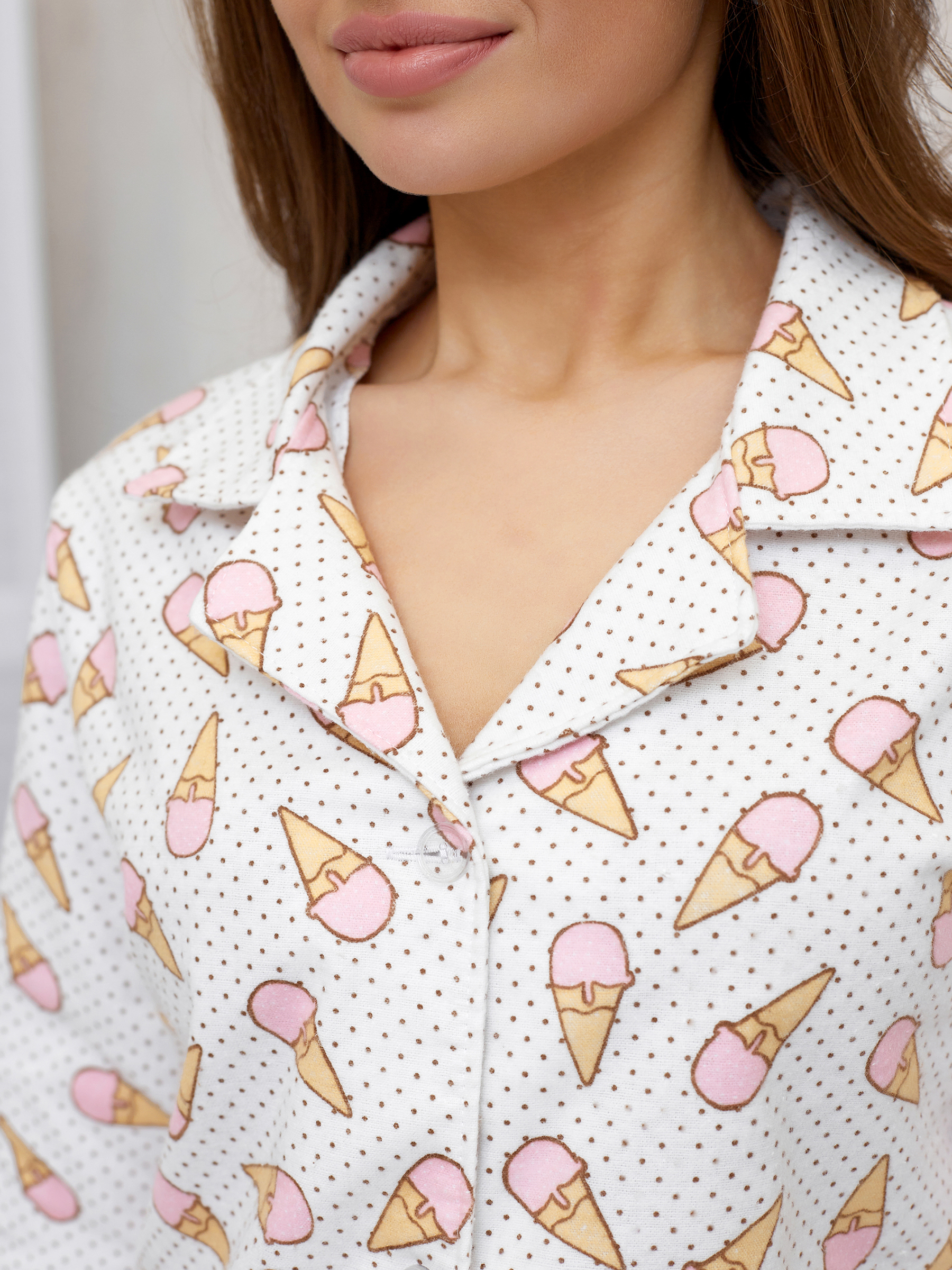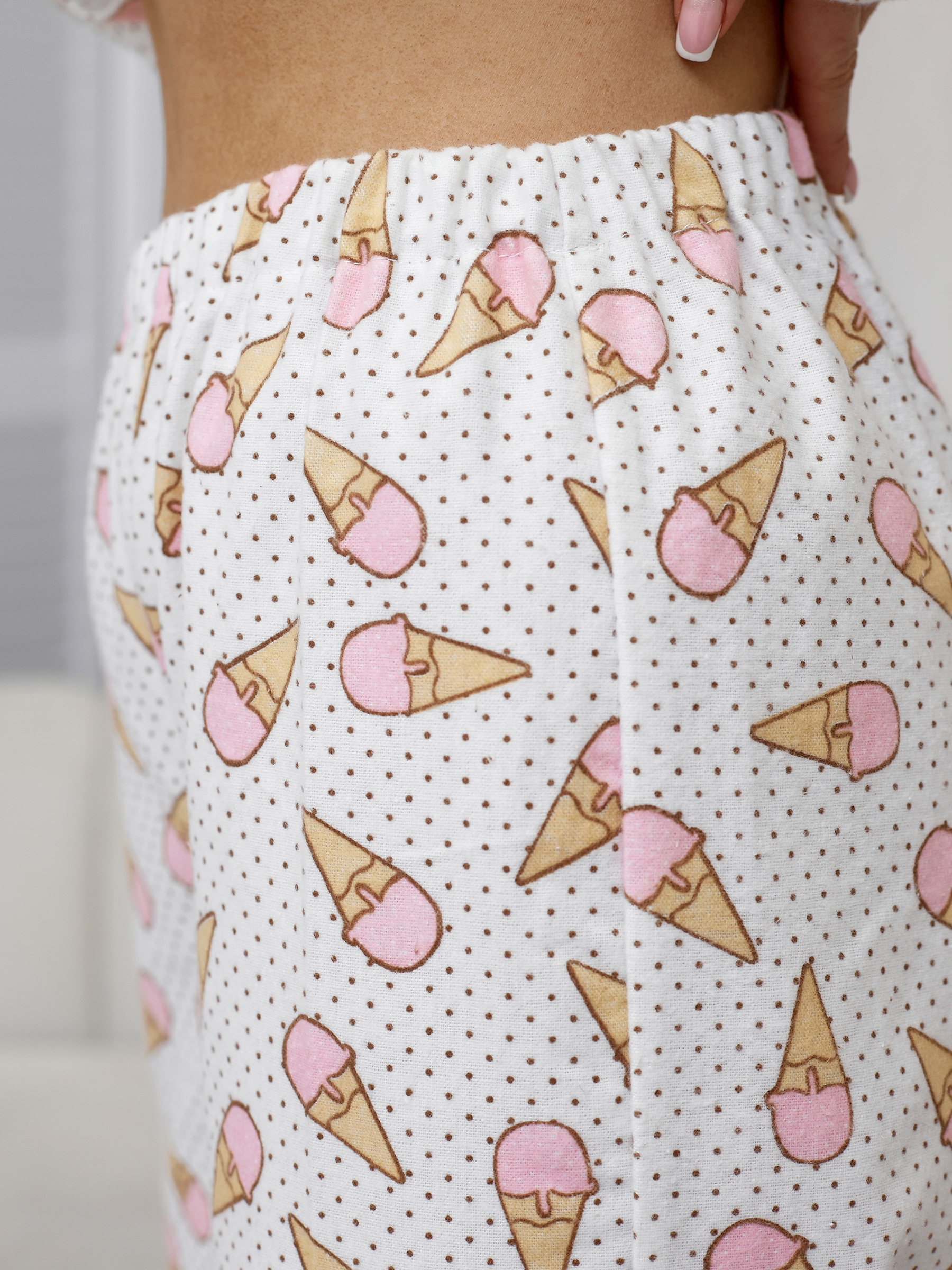 Костюм домашний больших размеров пропускает воздух, сохраняет тепло и удобна в носке. Брюки пижамные с высокой талией позволяют скрыть все недостатки фигуры и создать идеальный образ для сна.