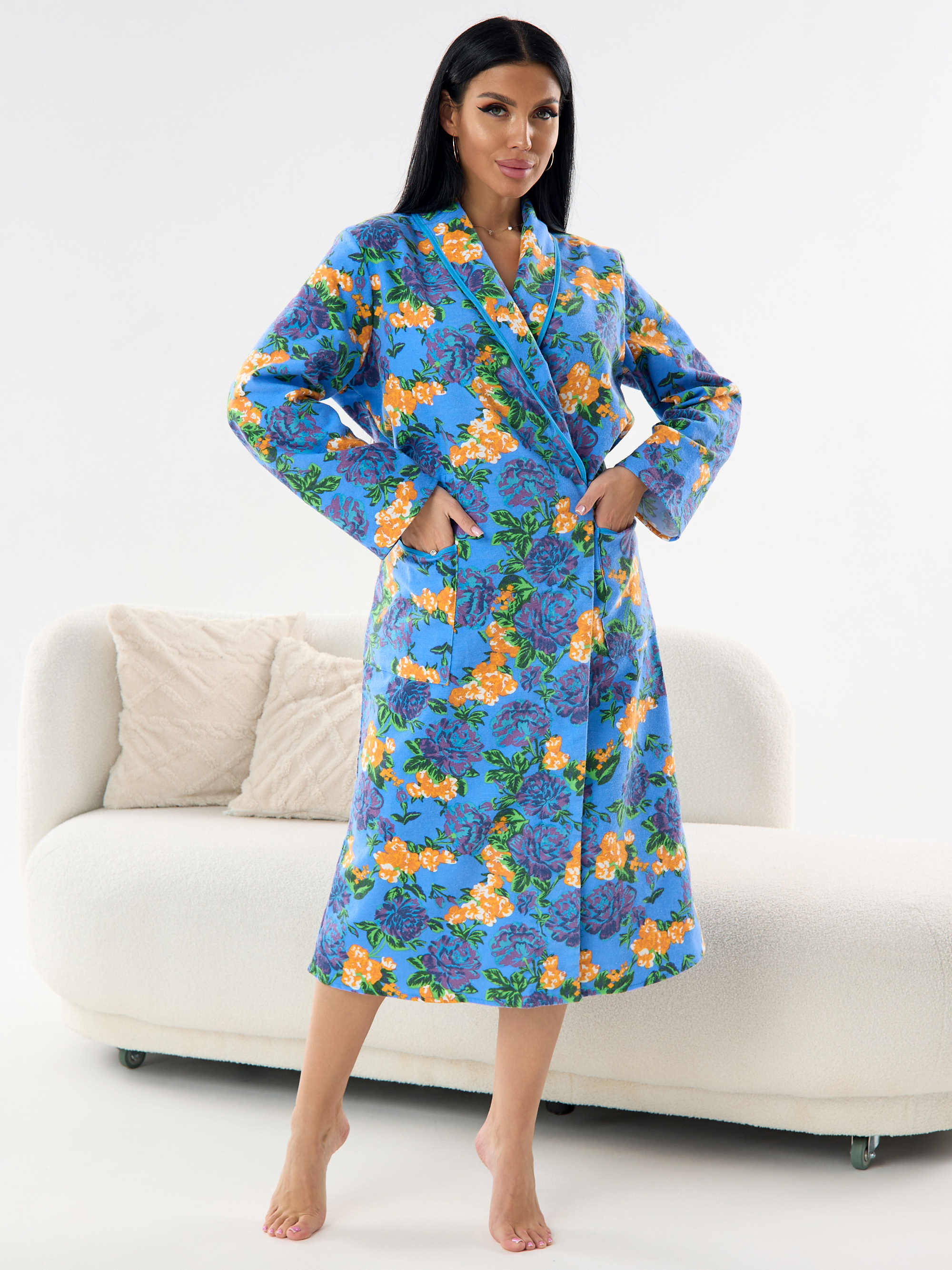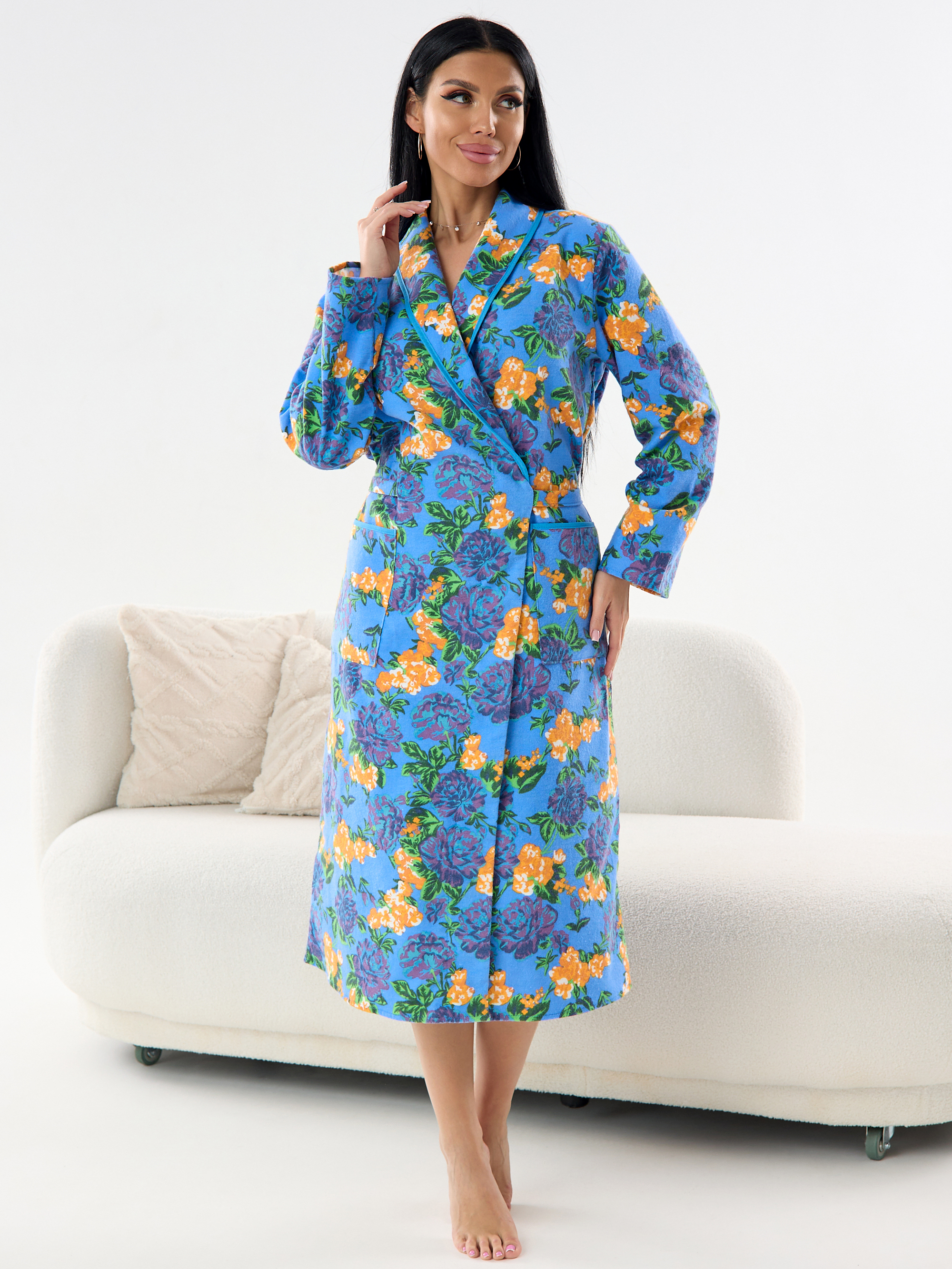 Халат фланелевый женский с запахом от Лето-Текс то, что надо для комфортного отдыха дома. Халат байковый женский с длинным рукавом и накладными карманами на запах приятно надеть после сна, душа или теплой ванны. Женский домашний халат хлопок запашной теплый выполнен из мягкой дышащей ткани мягкой фланели. Зимний халат благодаря широкому размерному ряду подойдет как домашняя одежда для полных женщин больших размеров, а также для беременных и кормящих мам. Женские халаты больших размеров удобно будет взять в роддом благодаря тому, что теплый женский халат с застежкой на запах его удобно будет быстро надеть и снять. Халат для дома длинный отличный подарок на Новый год или День рождения для мамы и бабушки.