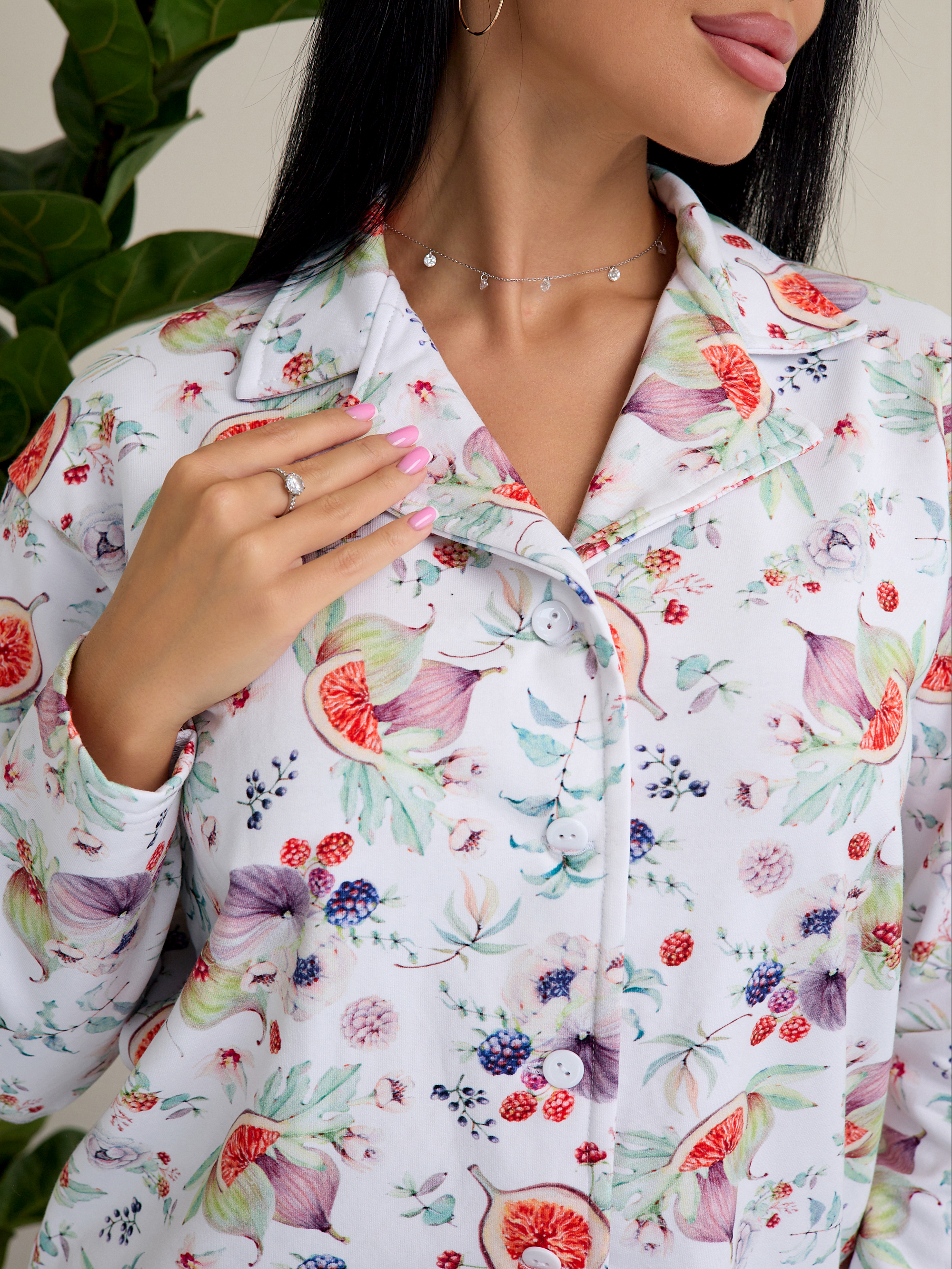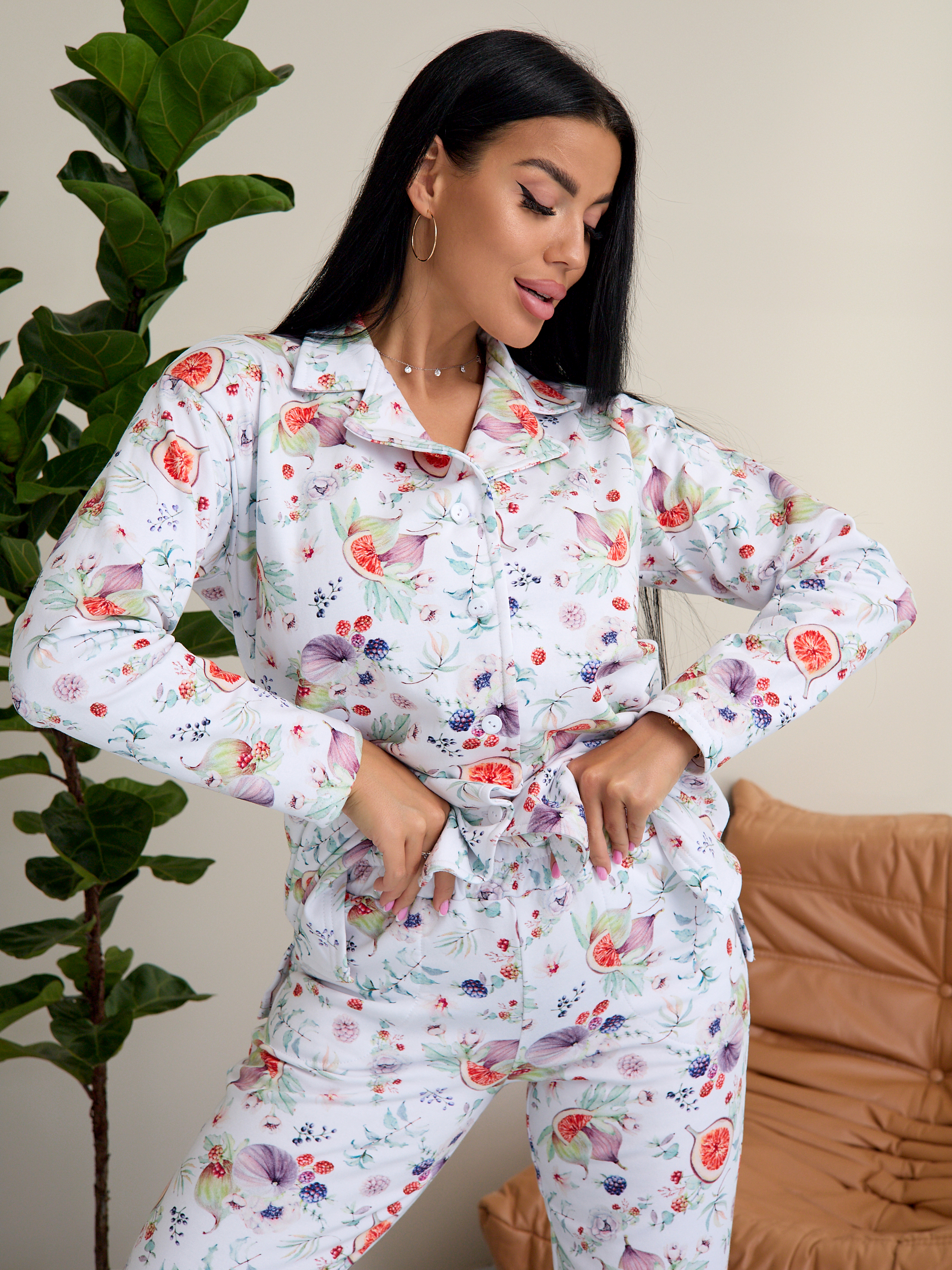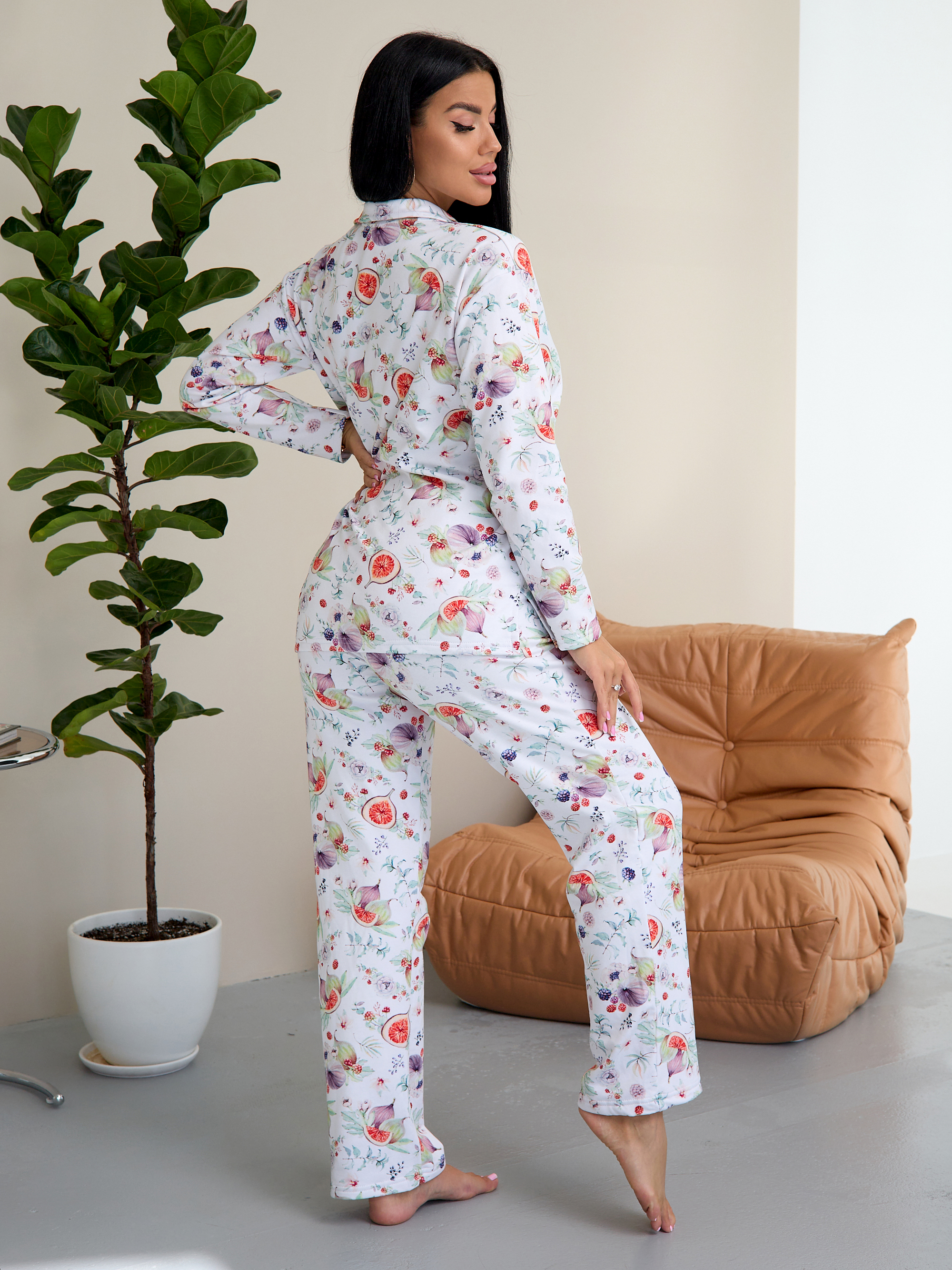 Зимняя пижама выполнена из максимально мягкого и уютного материала футер двухнитка с начесом, который обеспечивает ощущение комфорта и невероятной мягкости на ощупь.