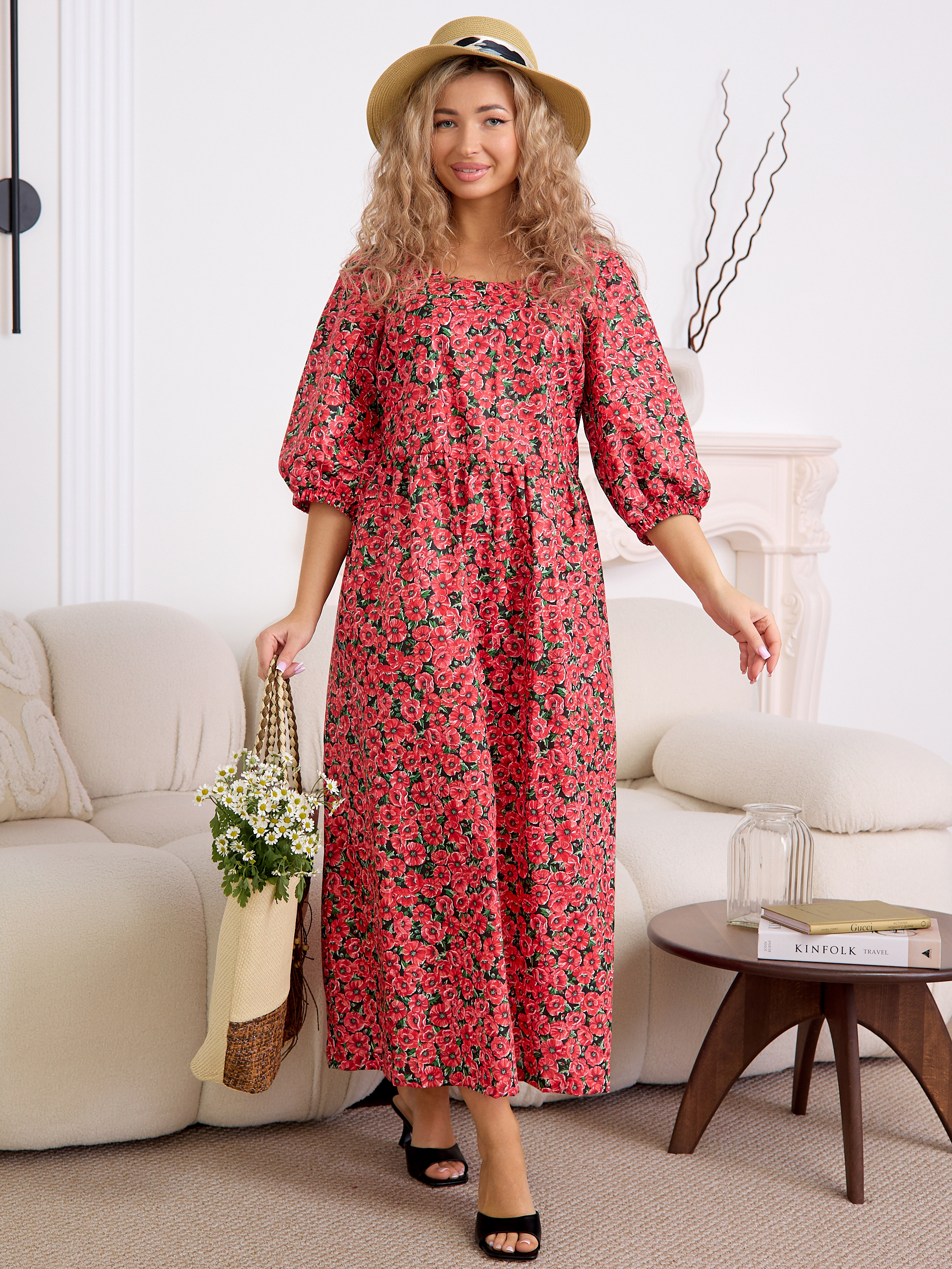 Ищете одежду, которая сочетает в себе деревенский шарм, комфорт и лёгкость? Представляем вам длинное платье в стиле бохо, воплощающее дух свободы и естественности. Модель выполнена из натуральной бязи (100% хлопок) — идеальной ткани для жаркого лета.