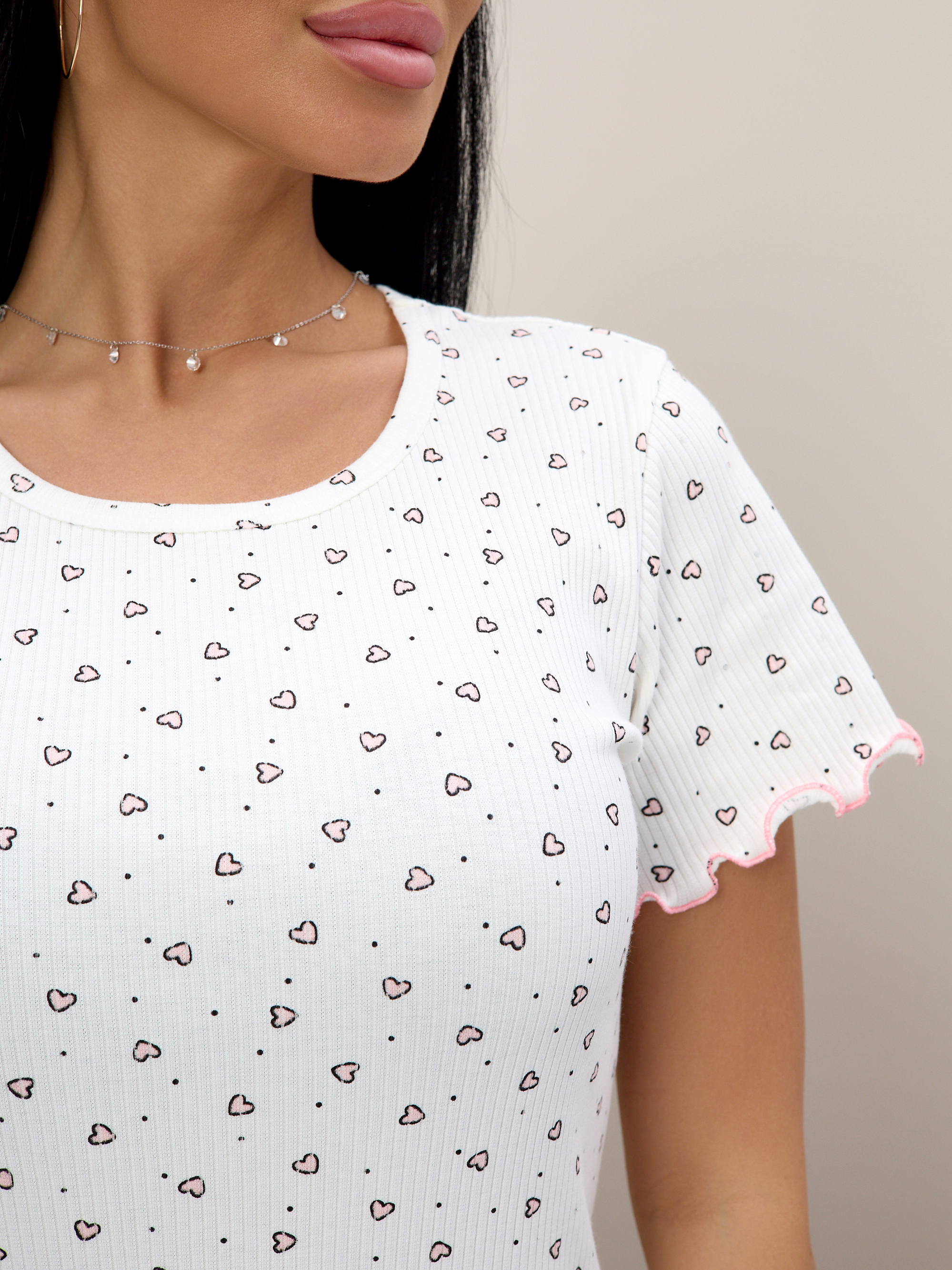 Ночная сорочка трикотажная с коротким рукавом в рубчик и с разрезом.